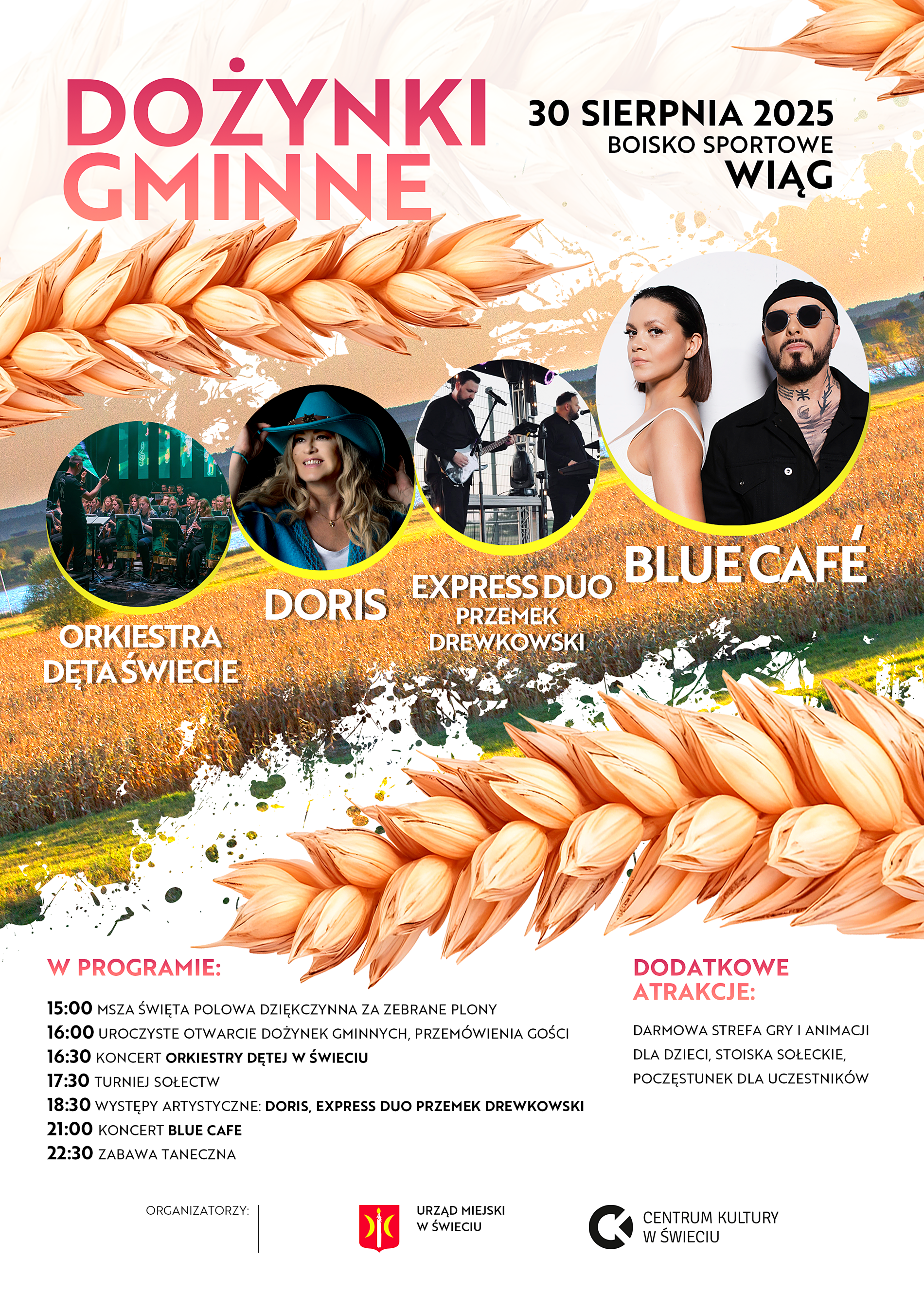 Oficjalny plakat wraz ze szczegółowym programem tegorocznych Dożynek Gminy Świecie: