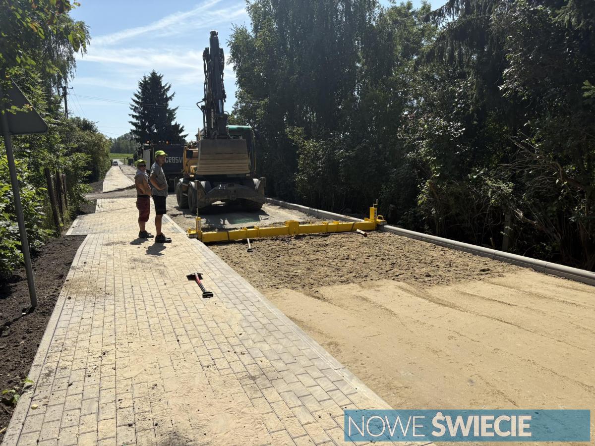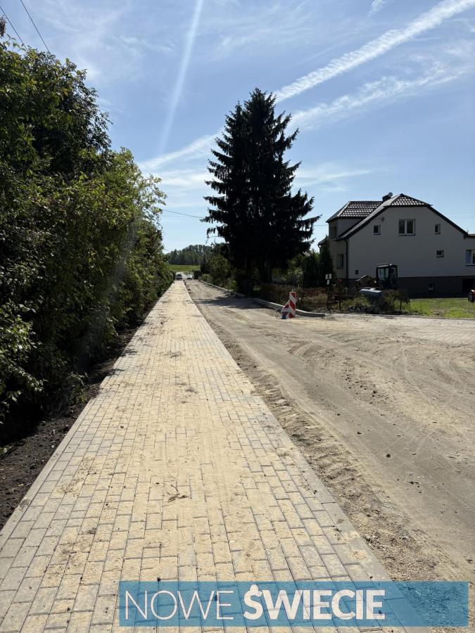 Zdjęcia przedstawiają postępy inwestycji budowy drogi na odcinku od wjazdu z drogi wojewódzkiej 207 przy wale do Małego Lubienia. Koszt projektu wynosi 3,56 mln zł, z czego 1,78 mln zł pochodzi z zewnętrznych źródeł. Firma DOM WESELNY "KAROLINA" MIROSŁAW MĄCZYŃSKI z Świerkocina jest wykonawcą. Prace rozpoczęły się 2 maja i potrwają do 30 kwietnia 2026 roku.