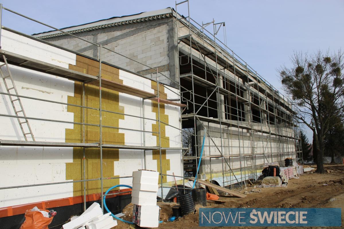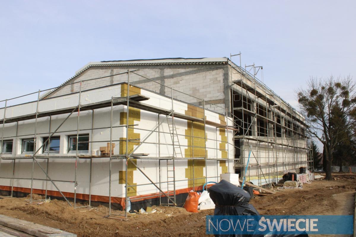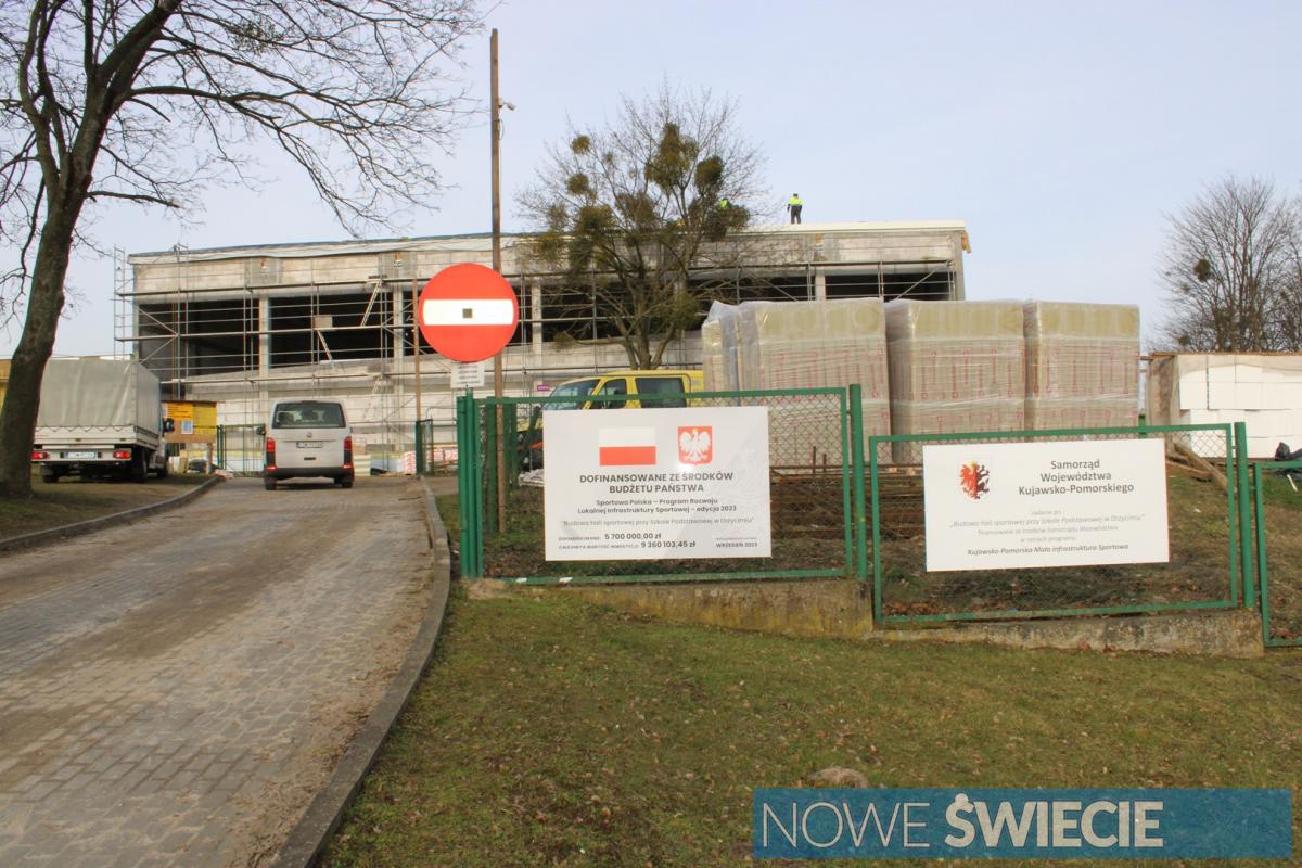 Na zdjęciach przedstawiona jest nowa hala sportowa w Drzycimiu, inwestycja warta 9 mln 360 tys. zł. Dzięki dofinansowaniu 6 mln 200 tys. zł oraz pracy konsorcjum Prof-Bud, powstała hala o powierzchni zabudowy 1 tys. 246 m² i wysokości 11 metrów, o wymiarach zewnętrznych 24x56 metrów. Obiekt pomieści widownię na 116 miejsc i umożliwi rozgrywki w piłkę ręczną, nożną, siatkową, koszykówkę, tenisa i badmintona. Dzięki zastosowaniu specjalnych kotar przesuwnych z siatki, możliwe będzie prowadzenie równolegle zajęć z trzema grupami młodzieży. Oprócz bryły hali, znajduje się zaplecze z sanitariatami, pokoju nauczycielskiego, magazynu na sprzęt sportowy oraz pomieszczenia technicznego. Impresje dostarczone przez Gminę Drzycim.
