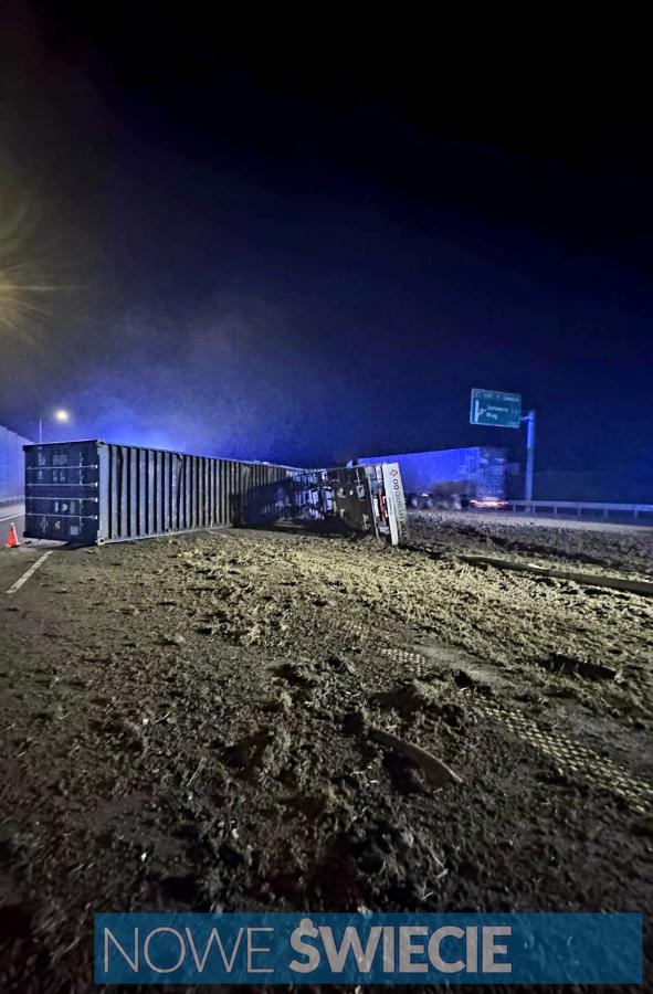 Zdjęcia Ciężarówka przewróciła się niedaleko Świecia. Były spore utrudnienia w ruchu - fotorelacja