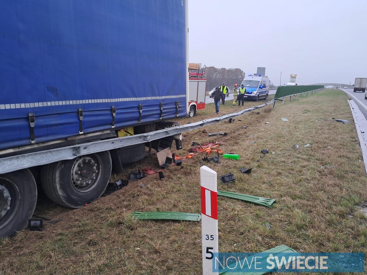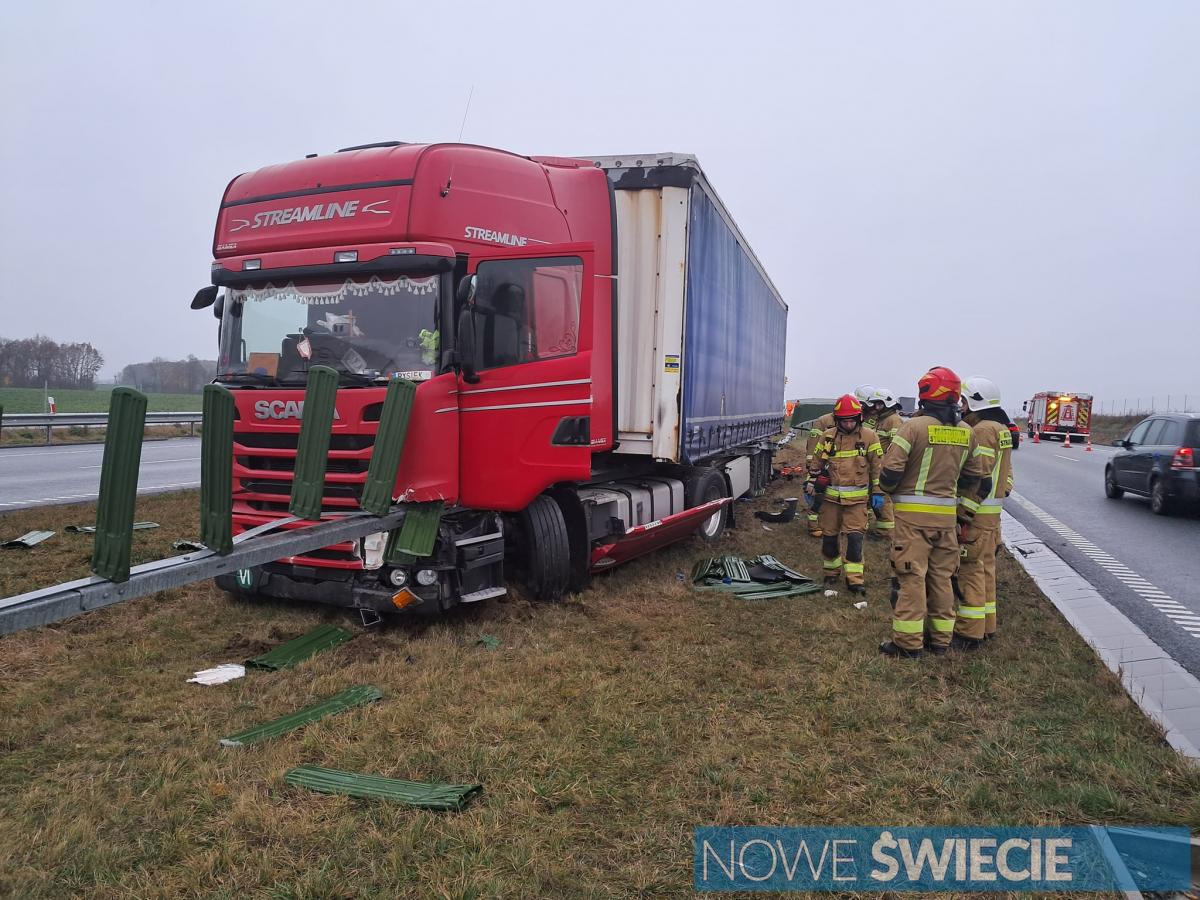 Galeria zdjęć z akcji ratunkowej na drodze ekspresowej S5 w miejscowości Niewieścin, gdzie kierowca ciężarówki zderzył się z barierrami ochronnymi. Na miejscu interweniowały służby ratunkowe i strażackie, zapewniając bezpieczeństwo na drodze. Na szczęście nikomu nic się nie stało. Oto zdjęcia z interwencji OSP Wałdowo i JRG Świecie oraz policji i służb drogowych.