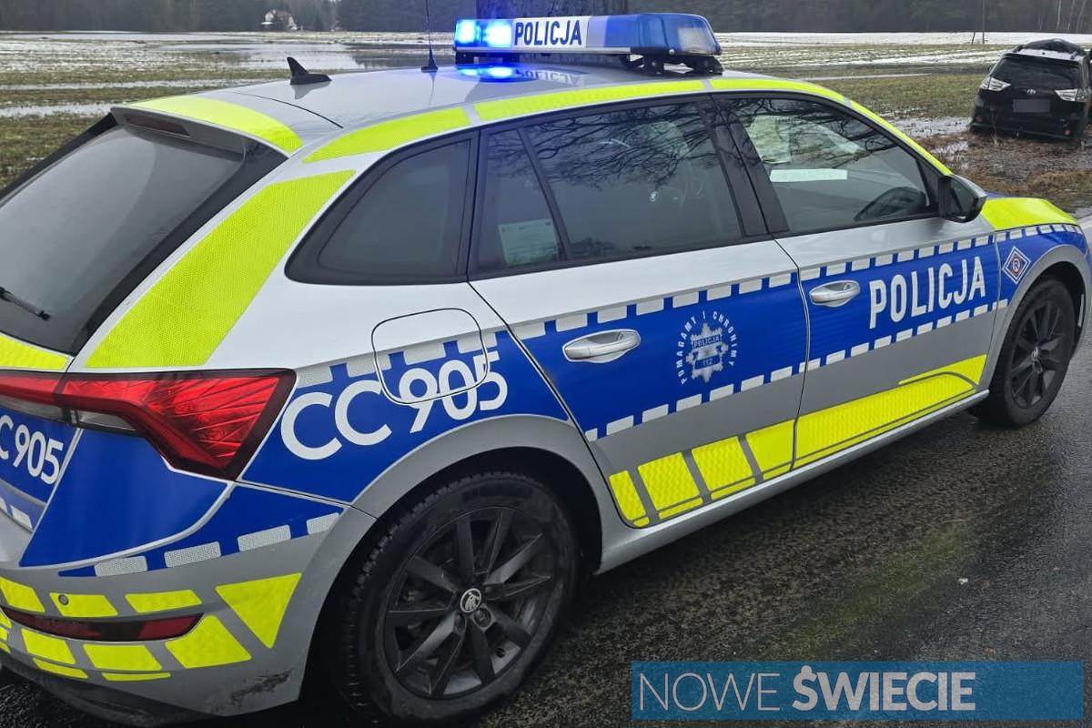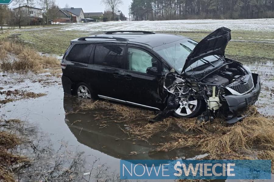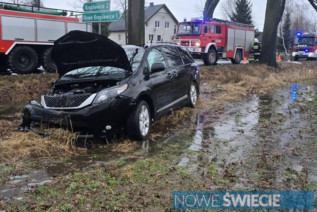 Wypadek w powiecie świeckim. Droga zalana, samochód uderzył w drzewo