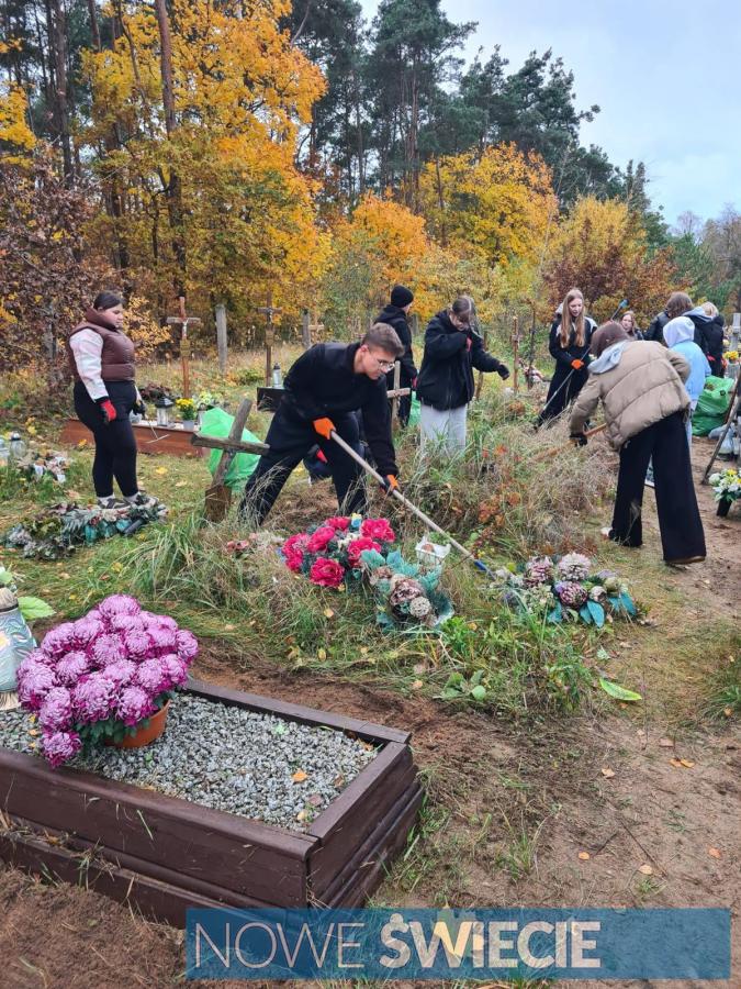 Harcerze z Hufca Świecie-Powiat, 1 Drużyny Harcerzy Starszych Niezgodni oraz 67 Drużyny Harcerskiej Jeźdźcy Smoków, spędzili dzień na nekropolii w Przechowie, dbając o zaniedbane mogiły mieszkańców gminy. Młodzież porządkowała alejki, usuwała liście i czyściła pomniki. To wspaniały gest troski, szacunku i harcerskiej służby drugiemu człowiekowi. Dziękujemy za zaangażowanie, ogromne serca i wzorową postawę. Takie działania uczą empatii i przypominają, jak istotna jest pamięć o tych, którzy odeszli.