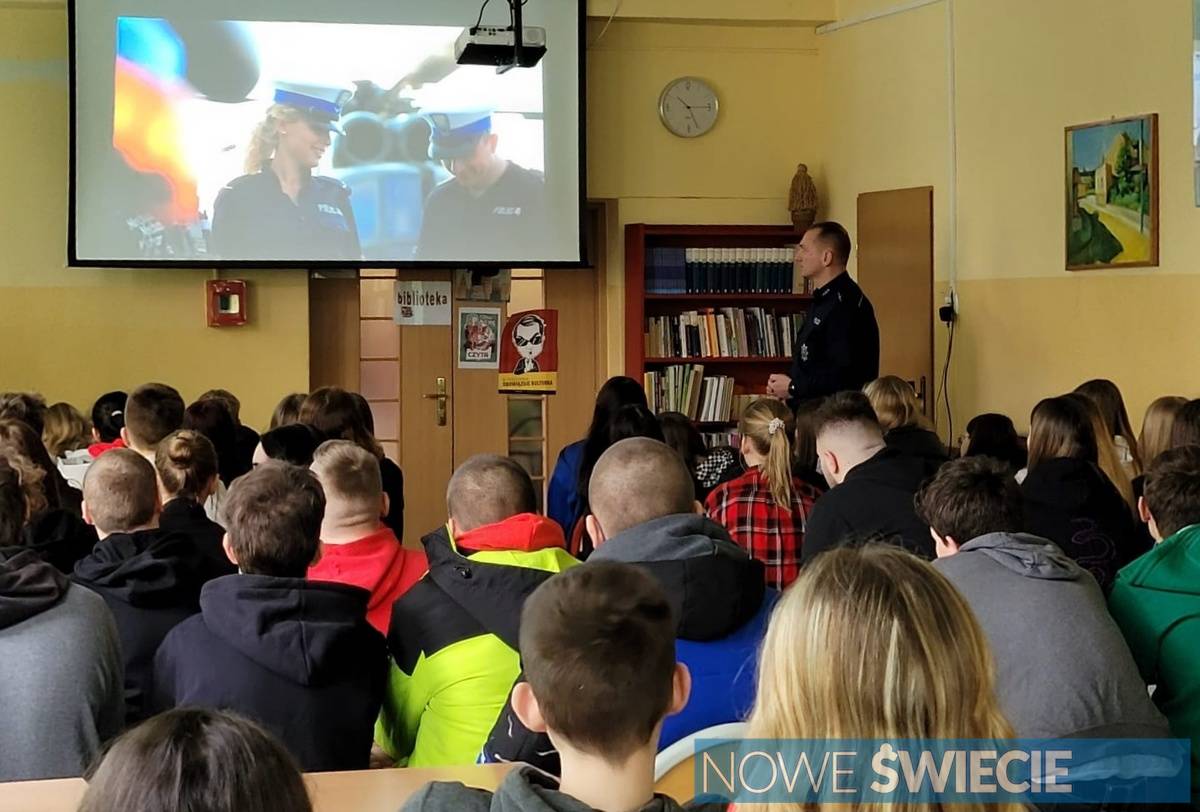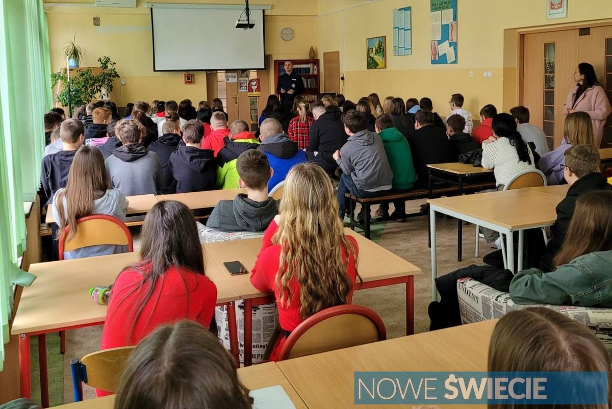 Mundurowi w Zespole Szkół Ponadpodstawowych w Świeciu. Zachęcali do wstąpienia w szeregi policji