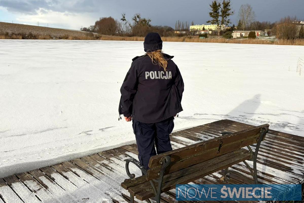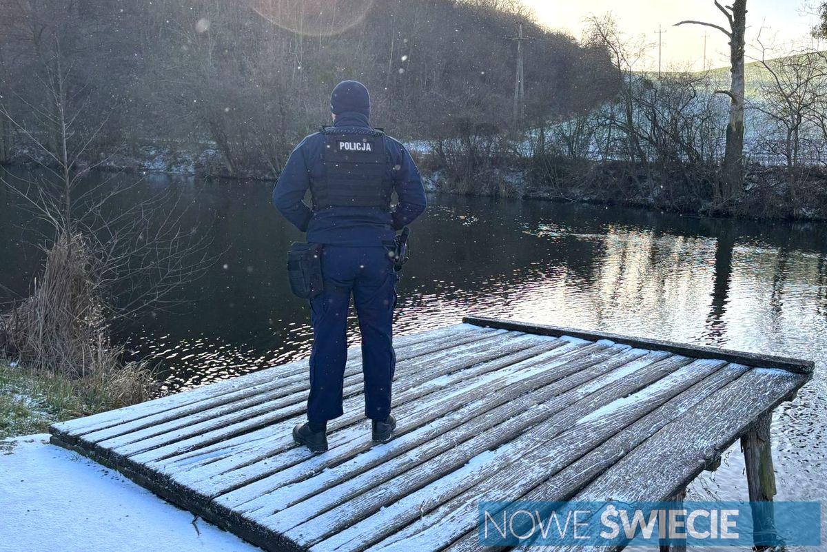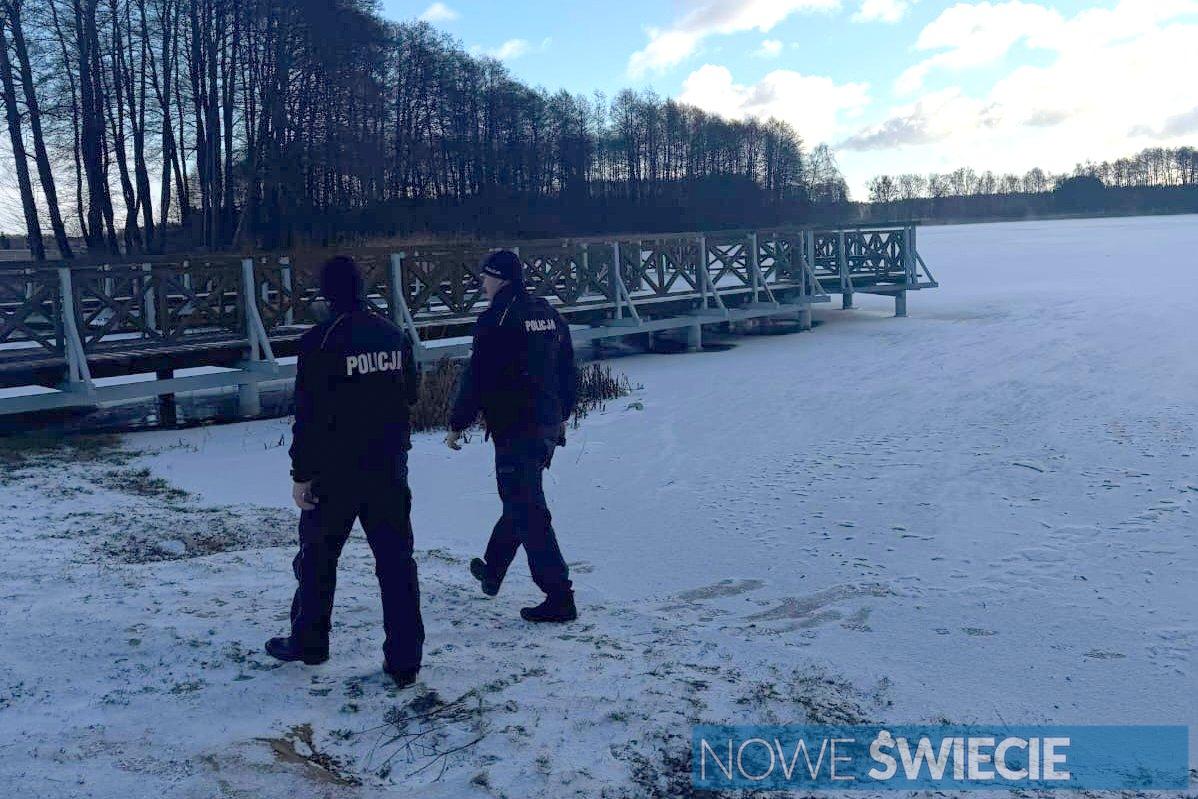 Policjanci prowadzą kontrole akwenów wodnych. Zamarznięte zbiorniki są bardzo niebezpieczne