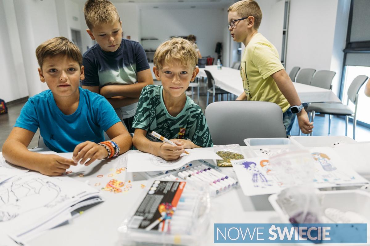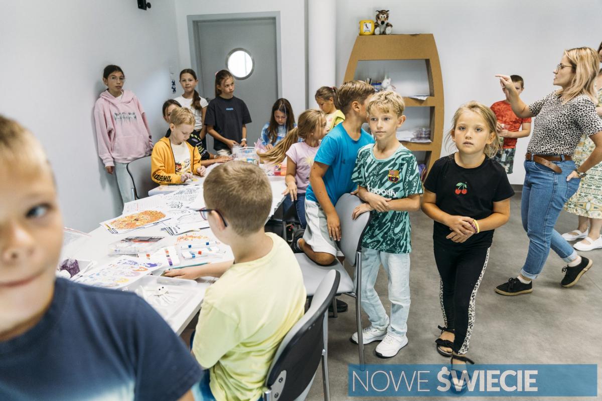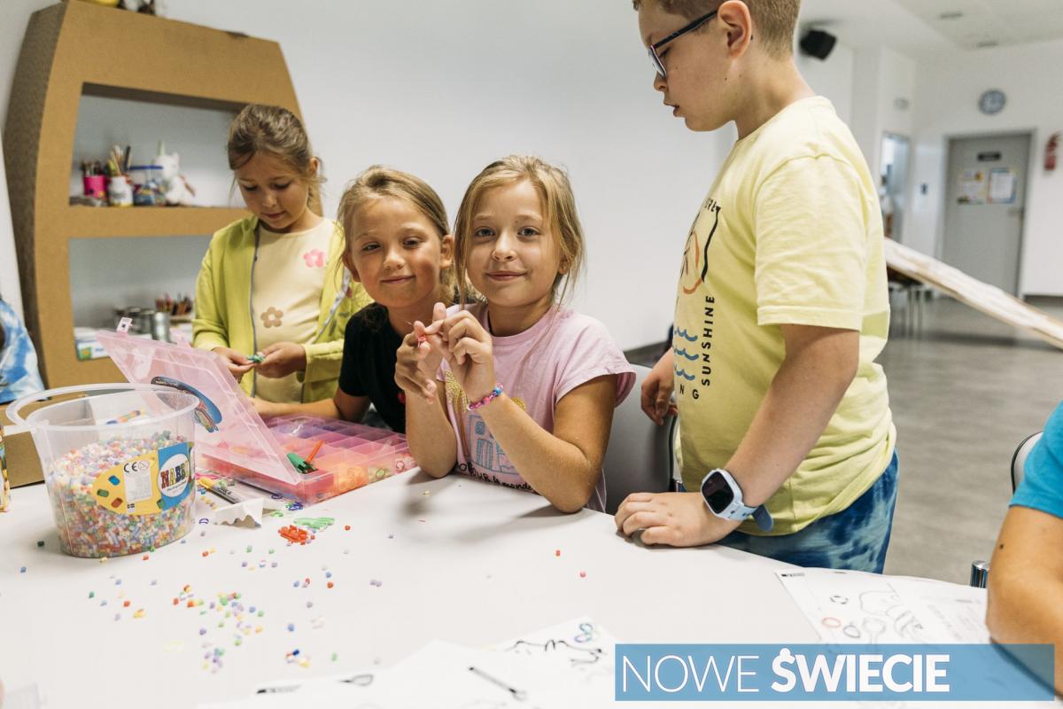 Dzieci spędziły aktywnie czas w przyrodzie i na warsztatach edukacyjnych w Tleńskim Centrum Czynnej Ochrony Przyrody. Następnie odpłynęły tramwajem wodnym po Zalewie Żurskim. W Toruniu odwiedziły Centrum Nowoczesności Młyn Wiedzy, brały udział w warsztatach Gwiezdne tajemnice. Również w bibliotece nie udało się nudzić - leśne dekoracje, figurki z gliny, butelki sensoryczne i slime, eksperymenty z Akademią Chemika oraz gry ruchowe i integracyjne to tylko część bogatego programu. Wszystko to udokumentowane fotografiami Rafała Skoczylasa.