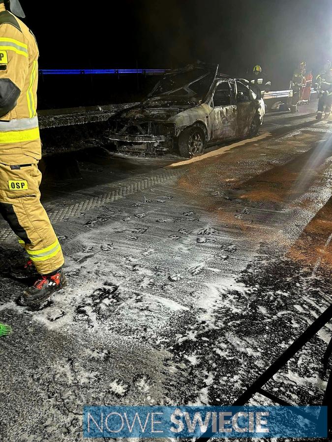 Zdjęcia Samochód osobowy stanął w płomieniach. Były spore utrudnienia w ruchu - fotorelacja