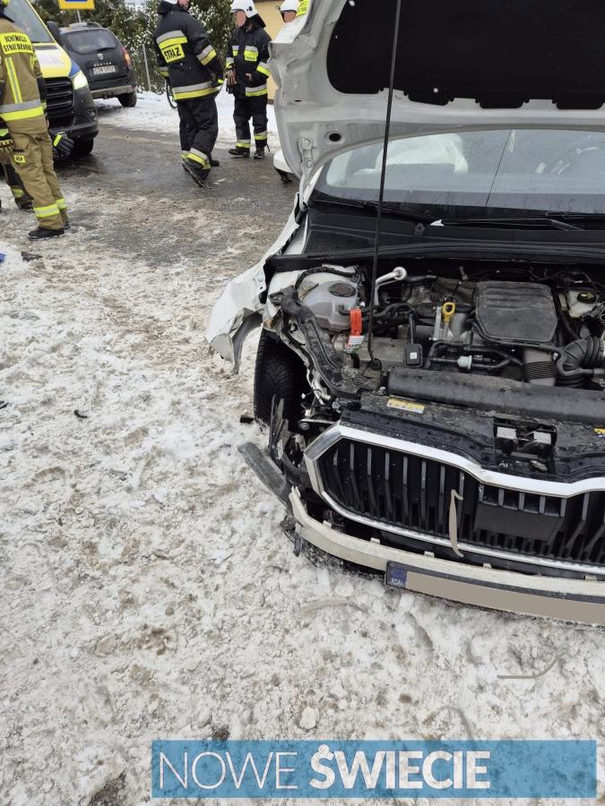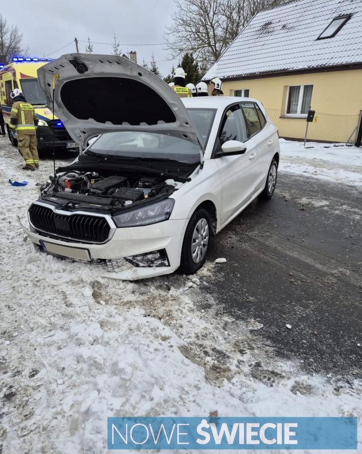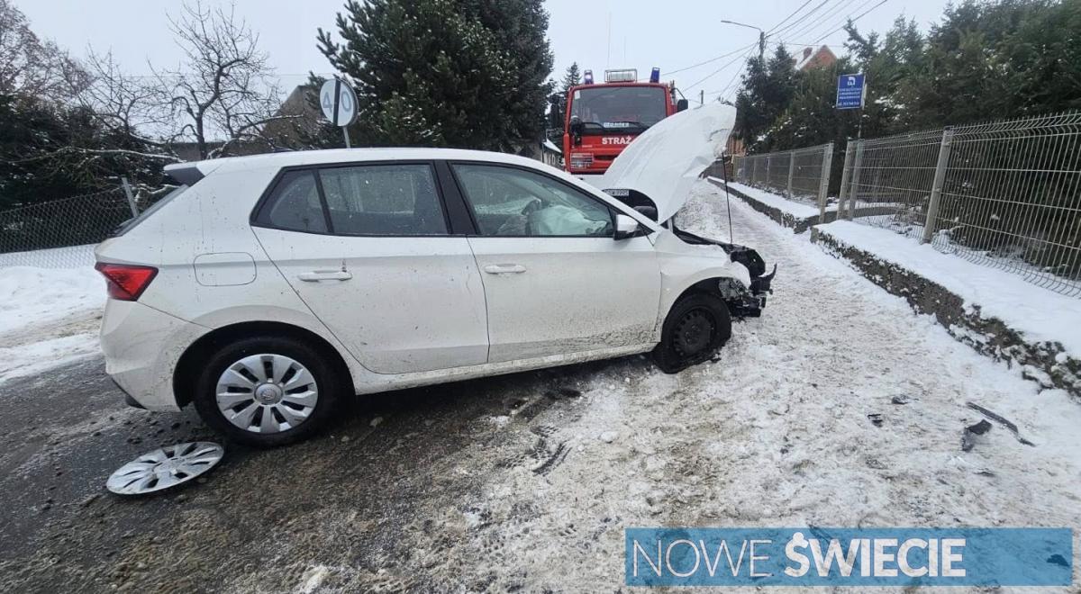 Zdjęcia Samochód wpadł w poślizg i uderzył w słup. Na miejscu straż, pogotowie i policja - fotorelacja
