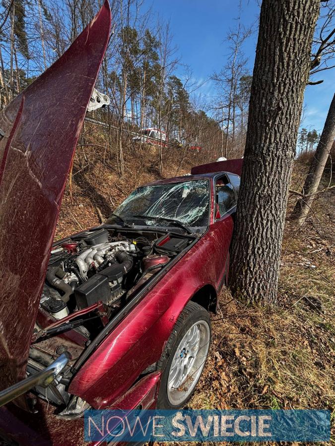 Samochód wypadł z drogi i spadł ze skarpy. Było groźnie