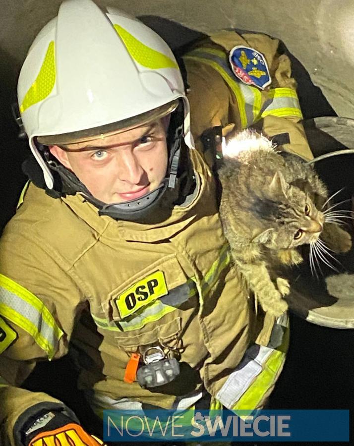 Zdjęcia Strażacy uratowali kota. Znajdował się na dnie głębokiej studni - fotorelacja