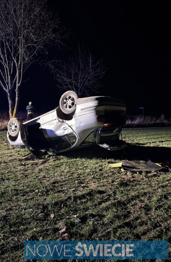 W gminie Pruszcz dachował samochód osobowy. Konieczna była interwencja służb