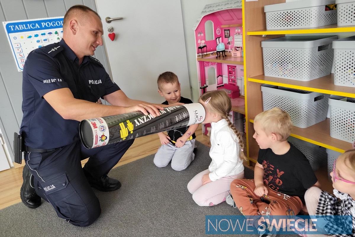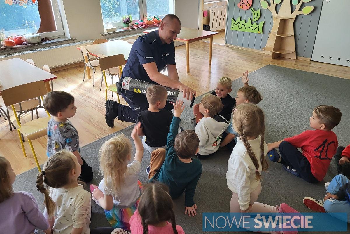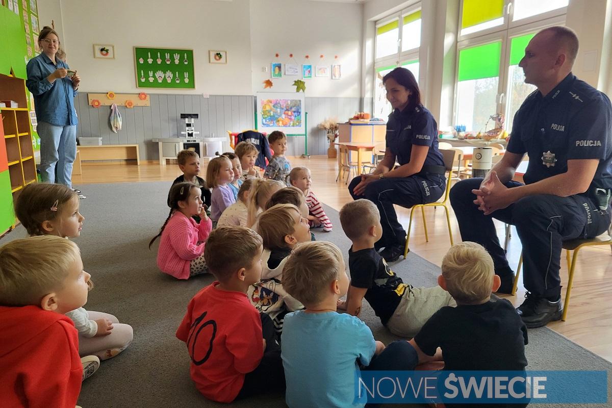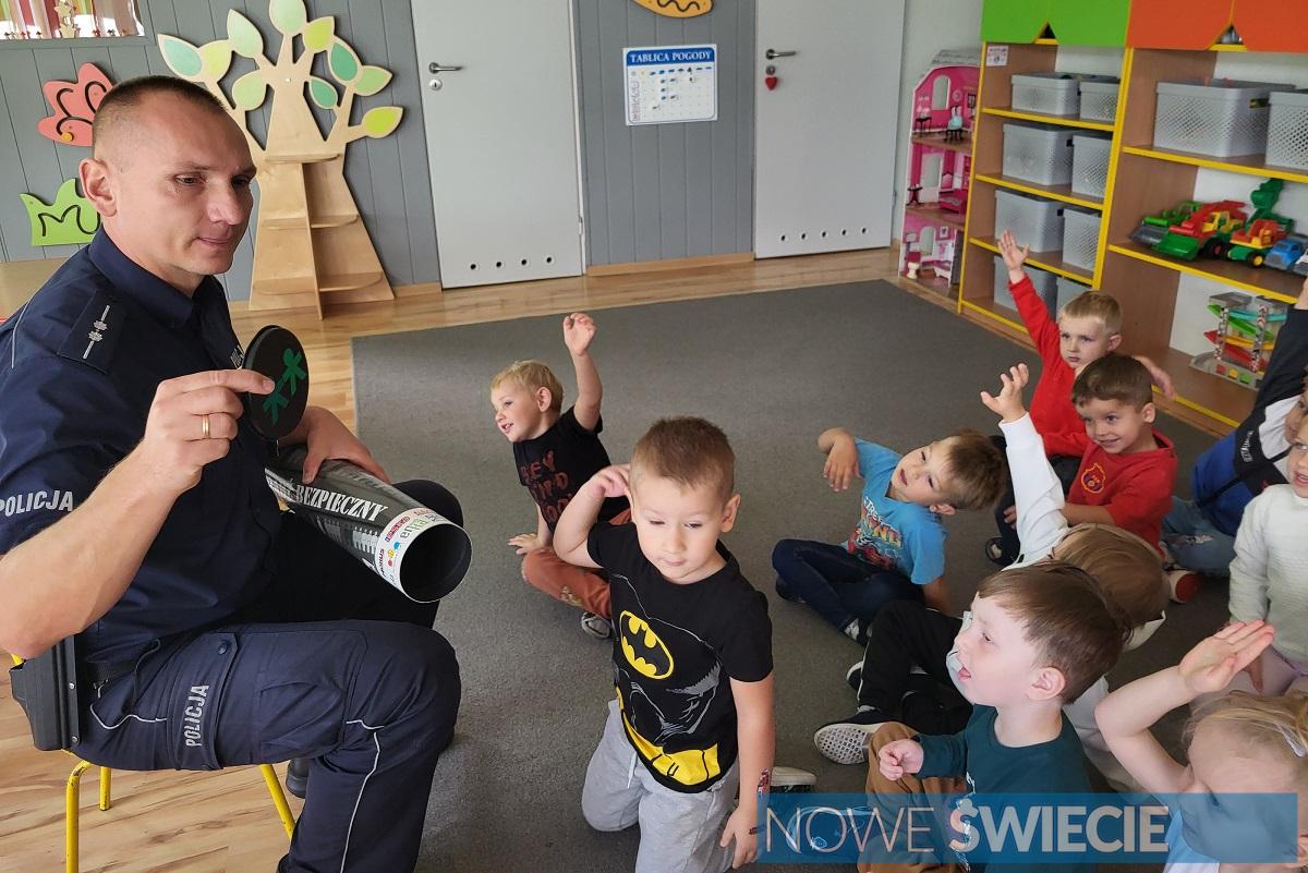 Policjanci z KPP Świecie odwiedzili Przedszkole Motylek, aby edukować najmłodszych o bezpieczeństwie. Dzieci spotkały się z mundurowymi, którzy opowiadali o pracy policjanta, korzystaniu z pasów i zachowaniu na ulicy. Maluchy aktywnie uczestniczyły w spotkaniu, dzieląc się swoją wiedzą i wykonując odciski linii papilarnych, a na koniec otrzymały odblaskowe zawieszki. ????✨