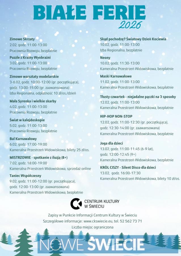 Zdjęcia Zaczynają się ferie. Lista atrakcji i wydarzeń w powiecie świeckim - fotorelacja
