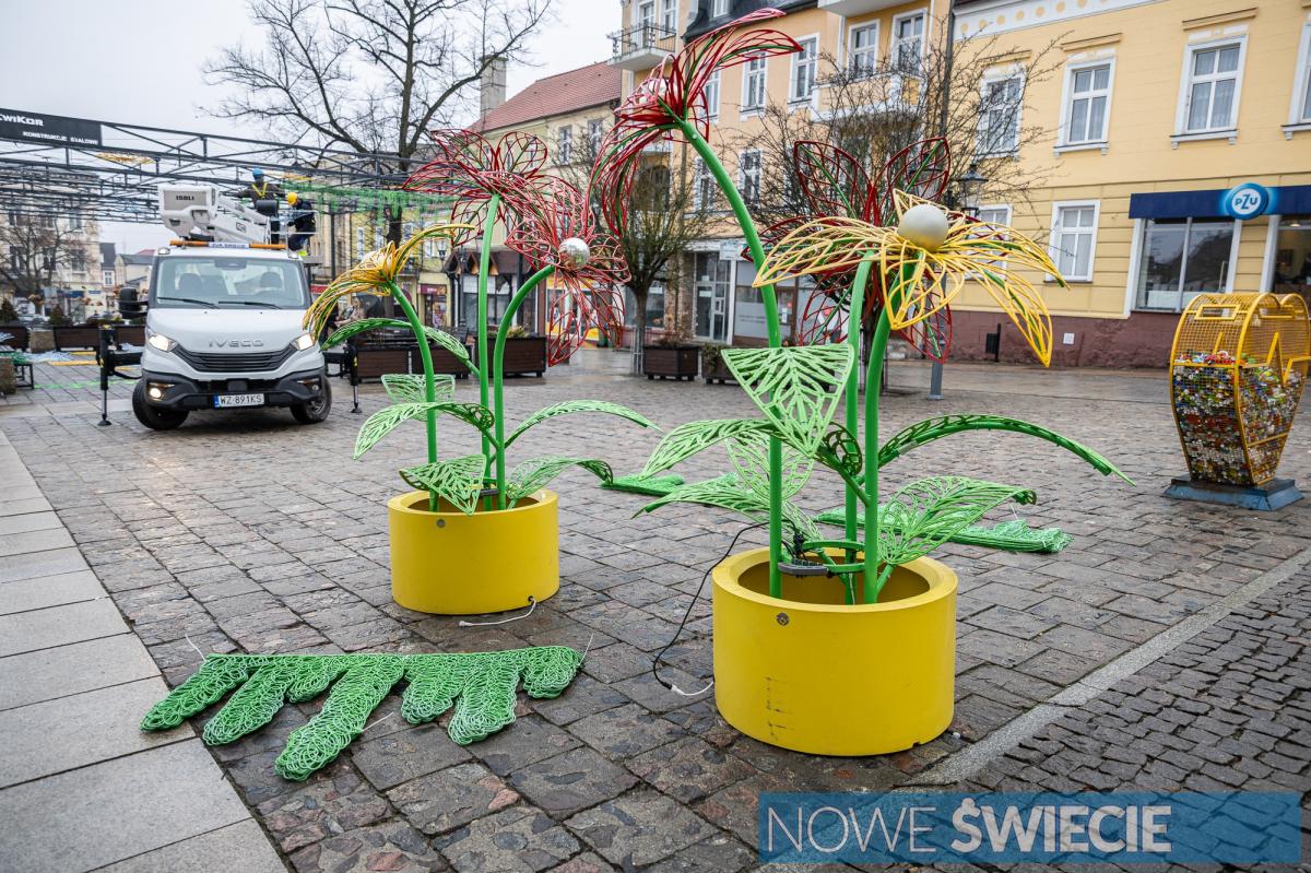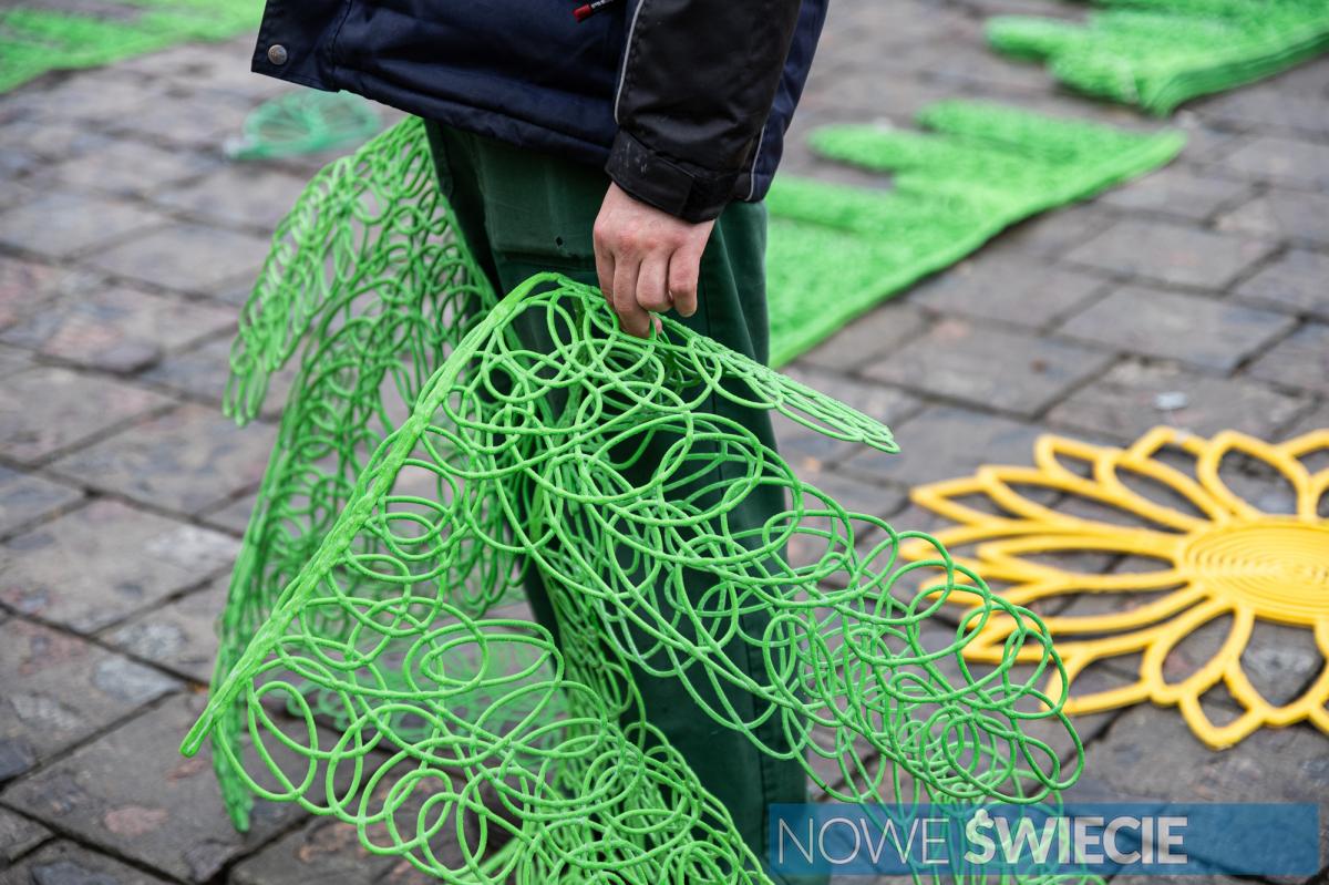 Zdjęcia Zmiany na Dużym Rynku w Świeciu. Trwa montaż wiosennych dekoracji - fotorelacja