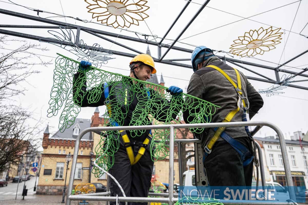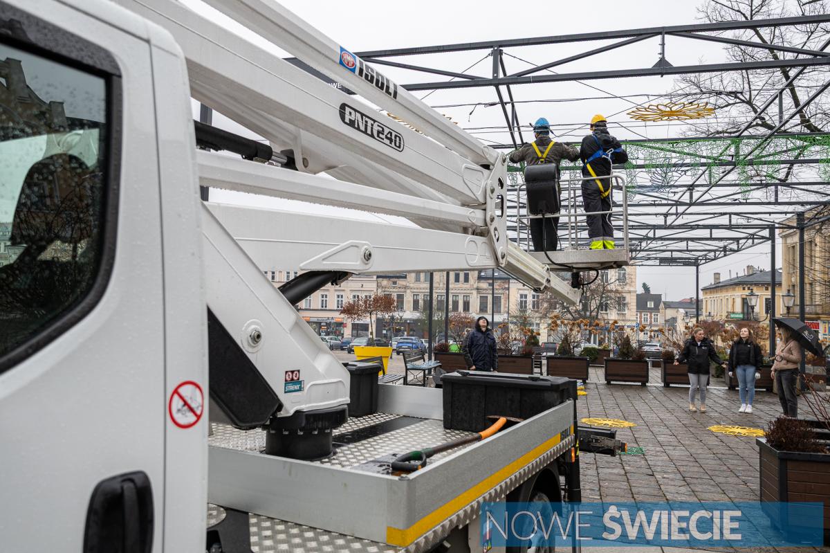 Zmiany na Dużym Rynku w Świeciu. Trwa montaż wiosennych dekoracji